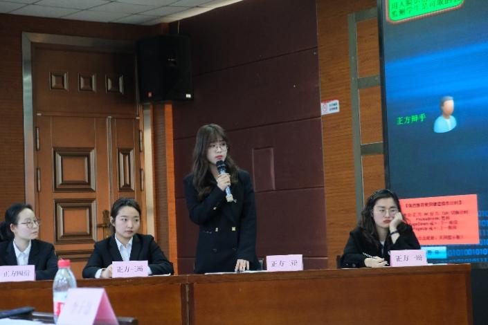 季军赛正式拉开帷幕,来自小教202班的正当率先提出:“人脸识别技术作为教育的辅助手段,在保持教师主观能动性的前提下,有利于教师教学目标的达成。”而来自小教204班的反方则持反对意见:“人脸识别技术的准确率会受多种因素影响从而降低,并且该项技术不仅没有尊重学生的人格尊严,还可能导致学生面部信息泄露而侵犯其隐私。”