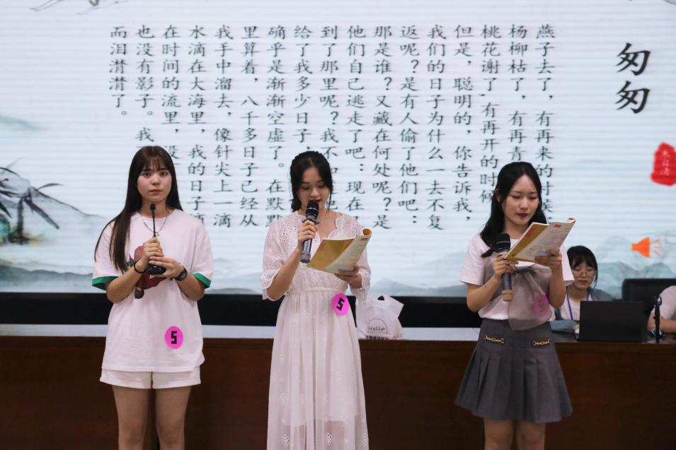 初阳F2-303寝室的打卡内容则是每天朗读与赏析一篇小学语文课文。通过情景剧的方式她们为大家解释了打卡内容的由来,一篇《匆匆》带大家回到那个青年匆匆奔走追求光明未来的年代。