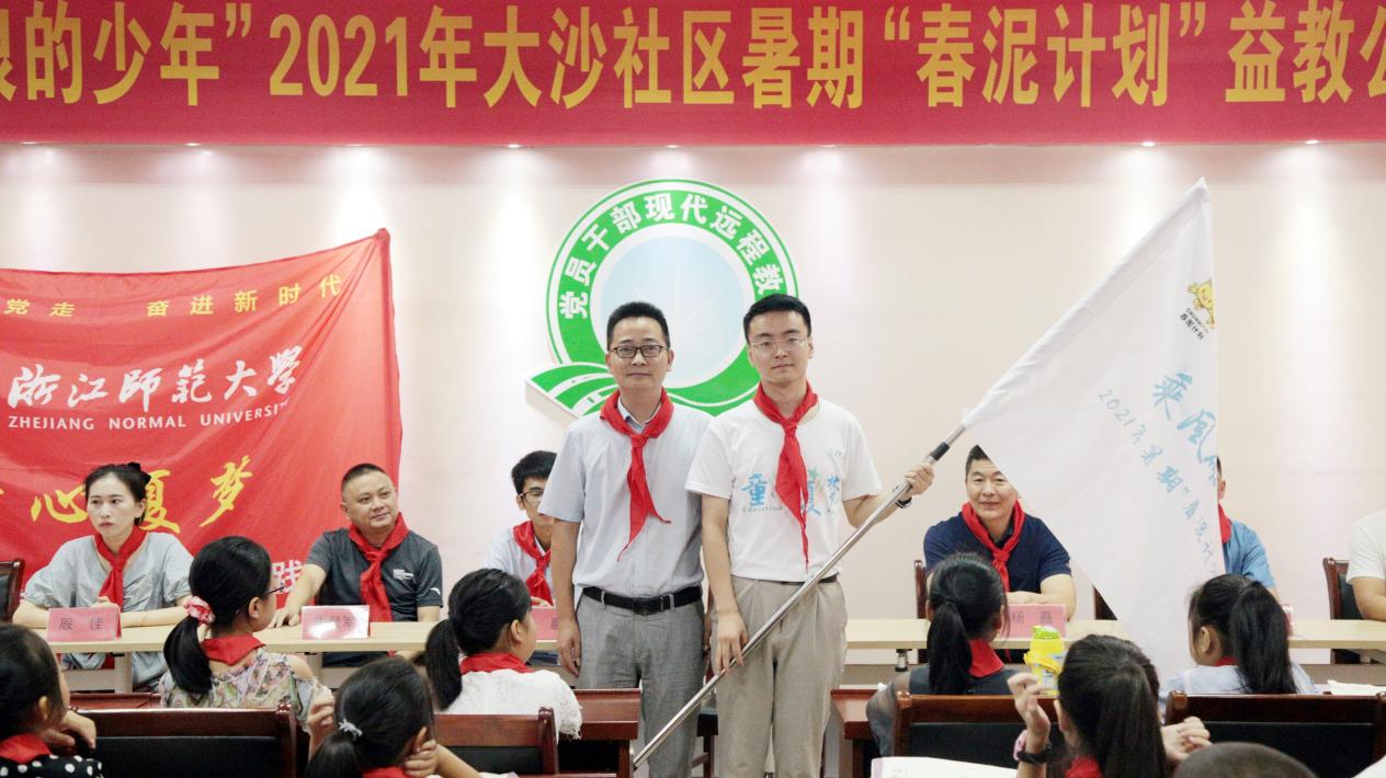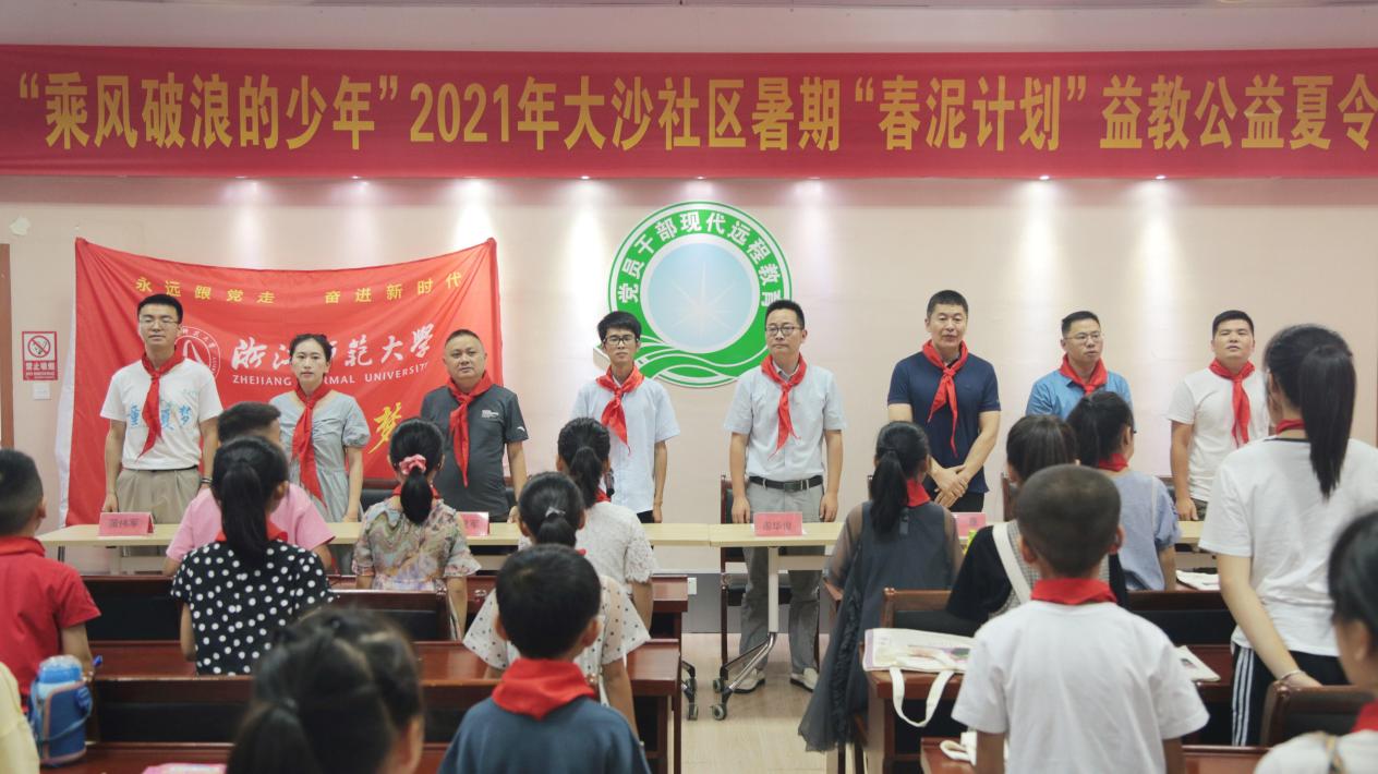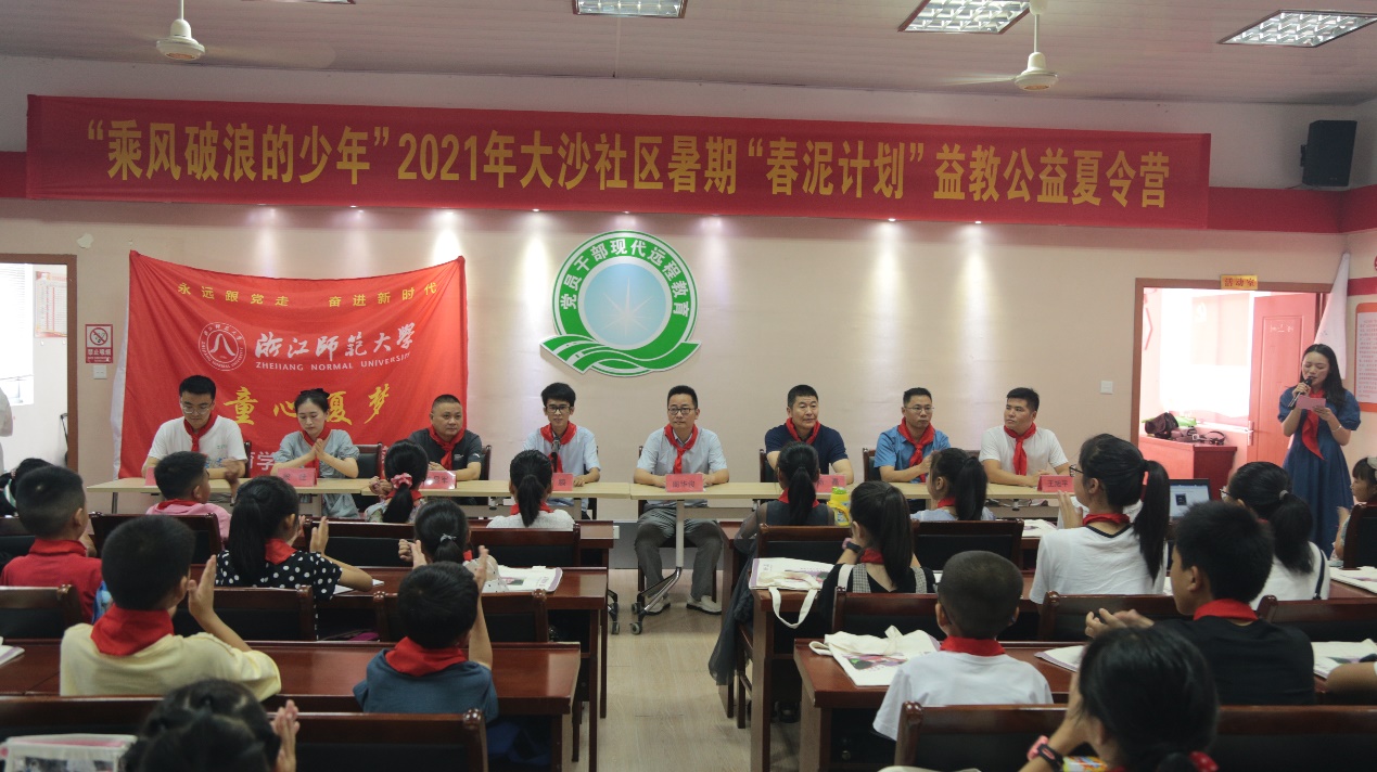 7月8日上午,浙江师范大学“童心夏梦”实践队暑期夏令营暨2021年大沙社区暑期“春泥计划”益教公益夏令营开营仪式在大沙社区活动中心顺利展开。
