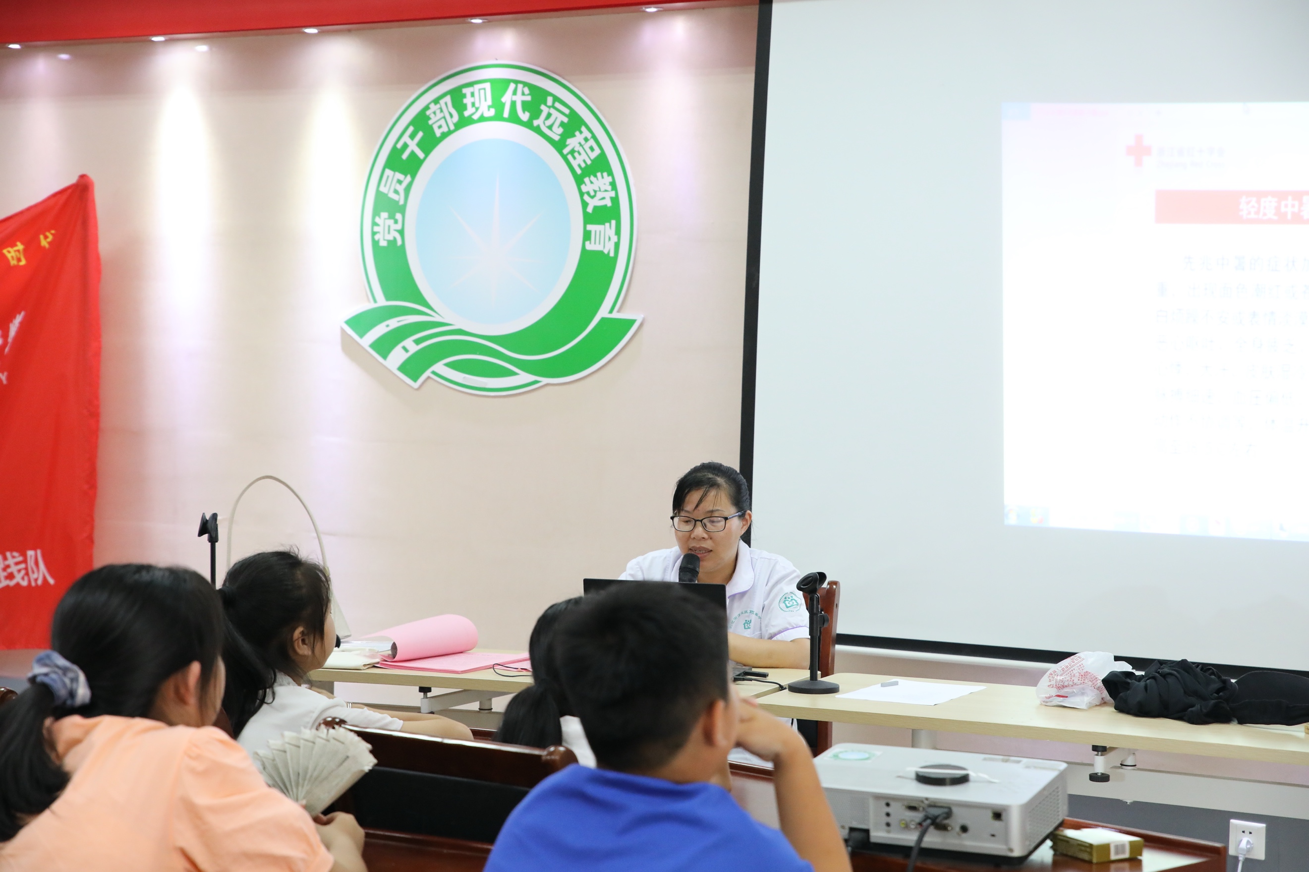 炎炎夏日,中暑等危险事件在未成年人群中时常发生。为了保护孩子们的生命健康安全,培养应急能力,加强有针对性的安全卫生教育十分必要。在卫生保健课上,老师向同学们着重介绍了重症中暑的临床表现,并强调了先兆中暑和轻度中暑时可以做的应急救护措施,增强了孩子们的防护与急救意识。