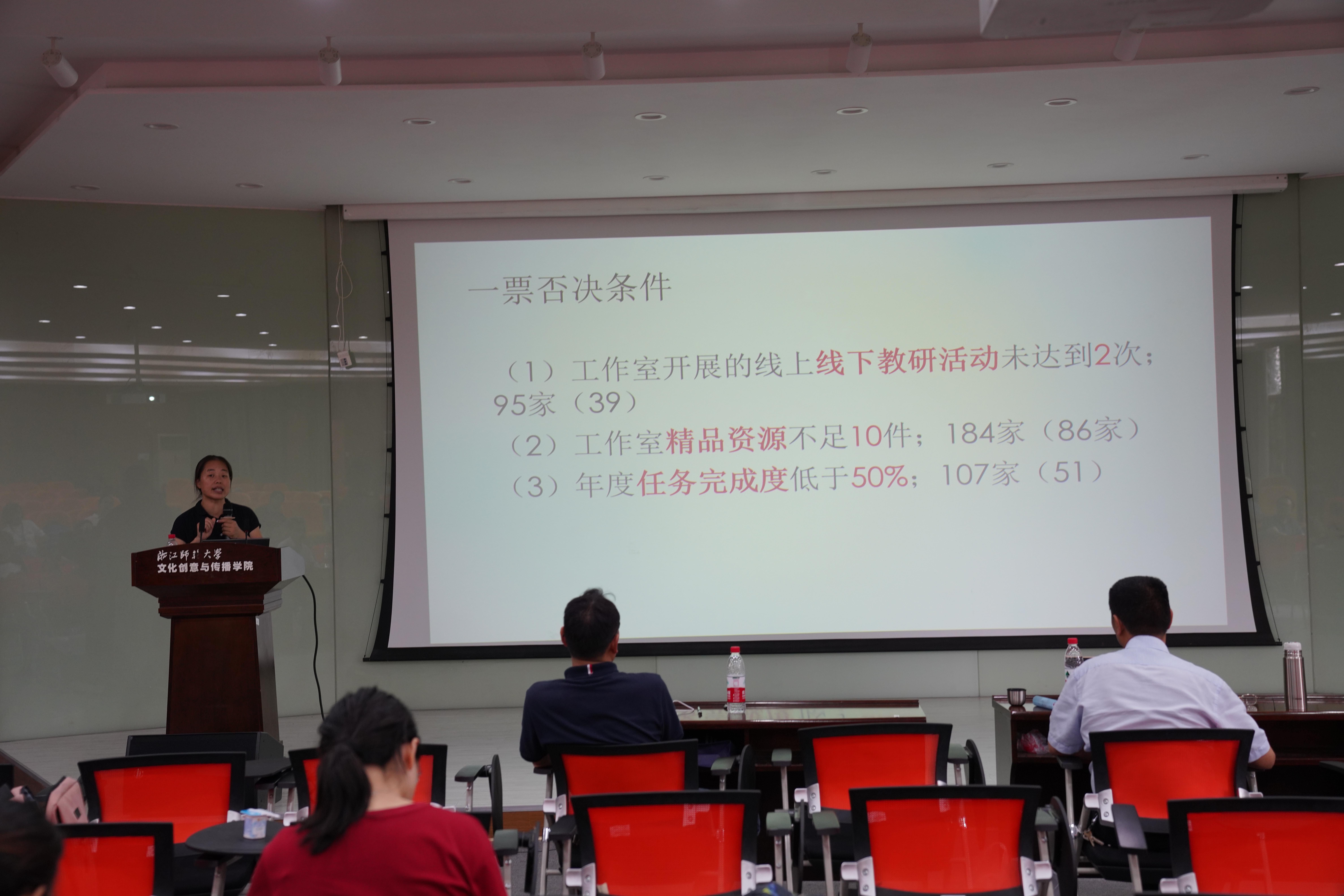 工作站的梁萍儿老师对工作站的日常工作及名师网络工作室建设过程中的热点问题进行了说明。考核工作是各工作室建设的起点,工作室应明确考核依据、考核程序、工作室评分指标及权重等相关方面的工作室考核事项。同时梁老师主要围绕工作室特色项目这一主题展开重要说明,希望工作室能把特色项目作为工作室向特色工作室前进的一个推动点,围绕特色项目的建设形成各自工作室的品牌与特点。