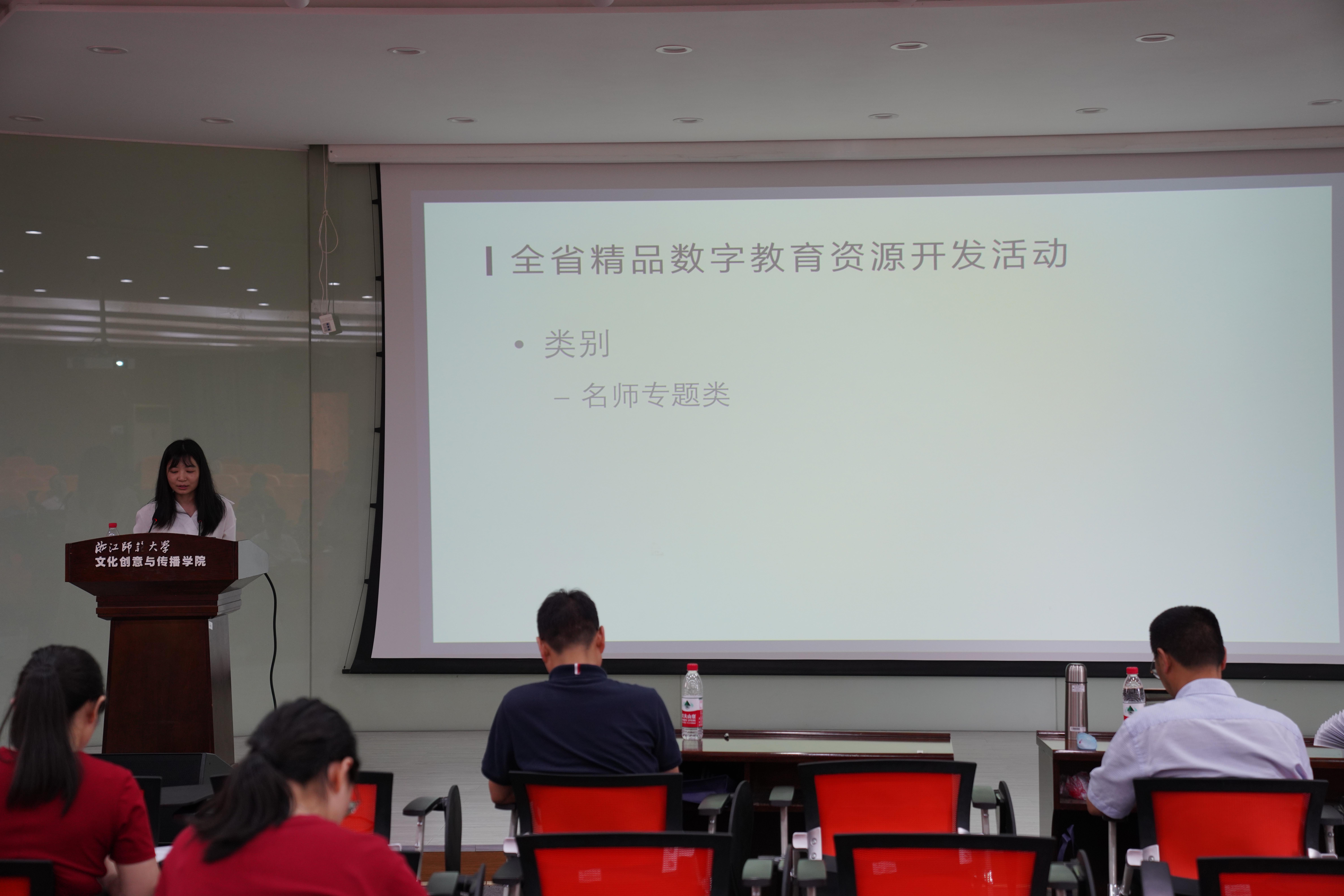 工作站的王一丹老师主要从省教育技术中心相关活动名师专项活动,数字化教育资源、建设、浙江省教育信息化研究课题两方面,对作了详细说明。关于数字化教育资源建设方面,王一丹老师对相关流程及注意事项进行了讲解,并介绍了一些在建设过程中可以用到的软件工具和技巧。关于浙江省教育信息化研究课题,王一丹老师对往年的名师专题类专项申报情况进行说明的同时给出了选题建议,并指出2021年起工作站不再组织课题的开题、中期检查等,须由工作室自行聘请专家组织并报工作站备案。