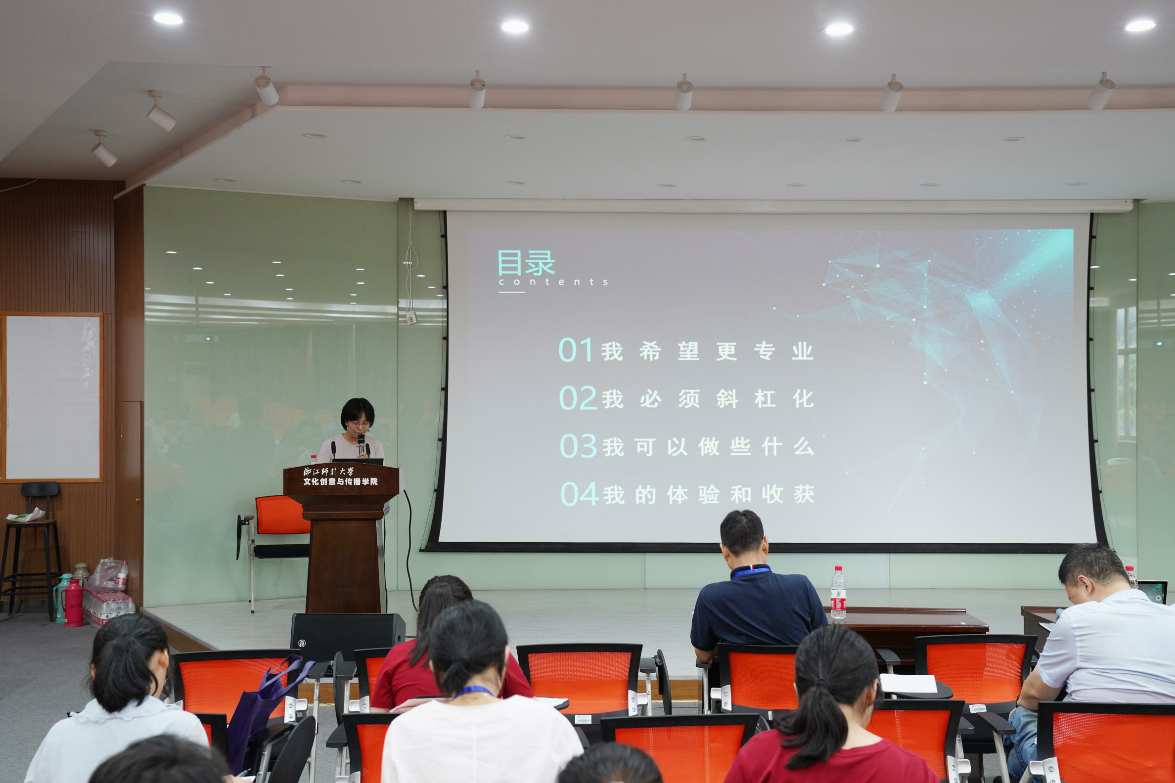 陆静老师就《做更专业的斜杠青年》这一主题,分享了她做工作室学科带头人6年来的体会。陆静老师从希望自身更专业的初心出发,认识到作为一名学带,具备多重身份的她,必须斜杠化。为此,陆静老师充分了解考核要求,积极完成考核任务,并在此过程中收获颇丰,实现了个人的专业成长。“很累,但收获很大”,这是陆静老师对自己作为工作室学科带头人6年来的总结。
