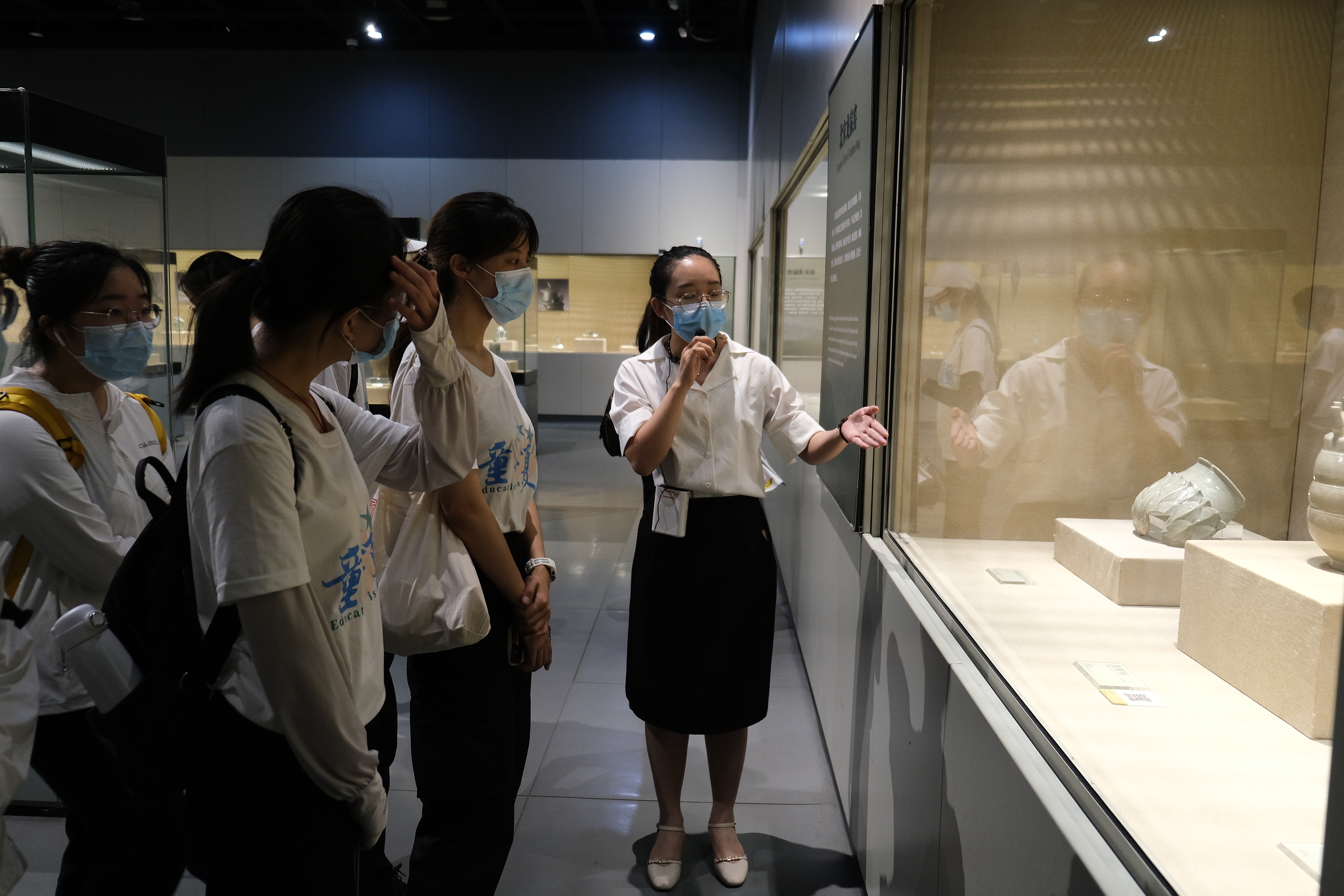 在一楼展厅,队员们跟随着讲解员的步伐,了解玻璃展柜内一块块残片碎瓷背后的历史。