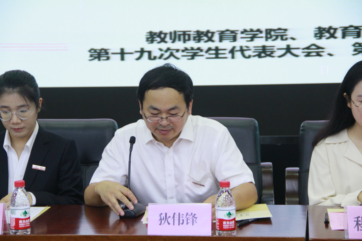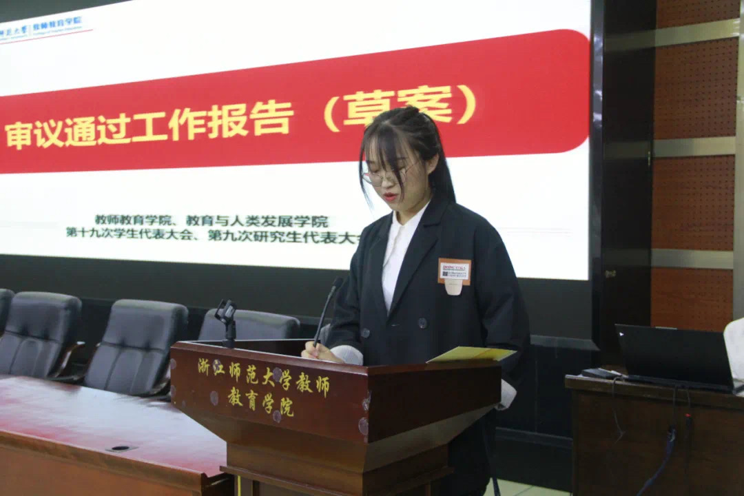 10月10日晚,浙江师范大学教师教育学院、教育与人类发展学院第十九次学生代表大会、第九次研究生代表大会于17幢112报告厅顺利举行。院党委副书记狄伟锋,校学生会执行主席程凌洲,校研究生会主席团代表齐昕,院团委书记兼学工办主任叶青,学工办辅导员黄璐、陈秋羽、张文潇、蒋栩璐、蒲伟军、马丽及49名研究生正式代表、92名本科生正式代表,共计141位本硕代表出席本次会议。