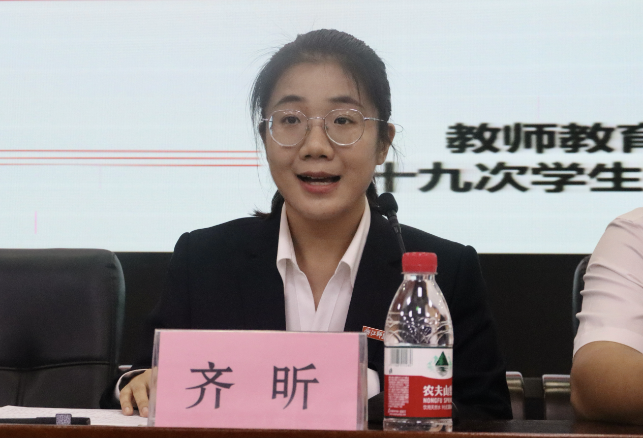 校学生会执行主席程凌洲对于教院学生会过去一年在思政教育、组织建设、品牌活动建设、学风建设、志愿服务以及文体心理等六个方面的工作给予了高度肯定。此外,她还分享了几点关于学生工作的感悟。“学生会要紧跟时代步伐,重视队伍建设”,她指出学生会要增强团队凝聚力与综合能力,时刻保持积极的工作态度,建设素质优良的学生骨干队伍。