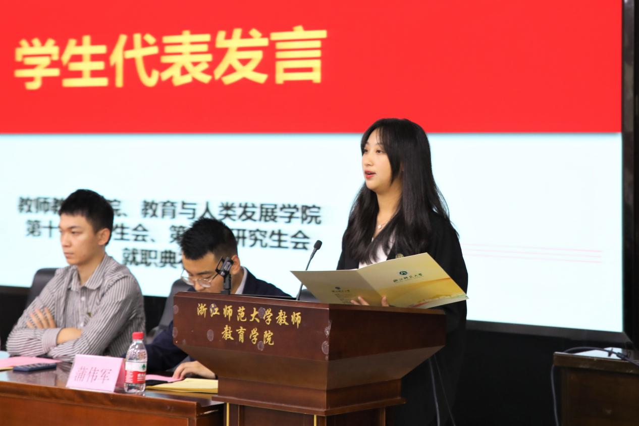 学生代表、教技201班班长吴可同学在发言中表达了对学生会、研究生会工作的感谢,同时希望新一届的学生会、研究生会能锐意进取、开拓创新,配合学院学生工作打造教书育人新气象,营造浓厚专业学习氛围,加强专业间融合交流,“不忘教书育人初心,牢记立德树人使命”,继续为全院学子服务,将学院学生会和研究生会打造成教育学子永远的牵挂和依靠。