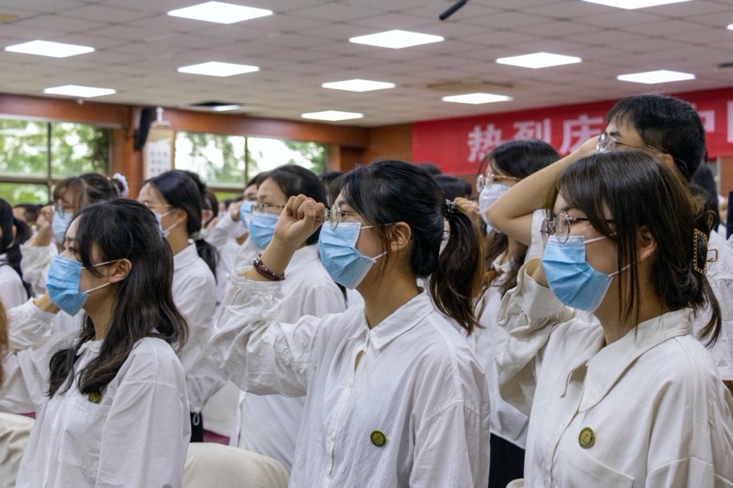 典礼的第六项议程,与会领导老师为新一届学生会、研究生会干部颁发聘书并合影留念。随后,由学生代表、学生会主席团成员、融媒体中心主任方政领誓,所有学生会成员共同宣誓,许下了对学生会工作严谨负责的承诺。