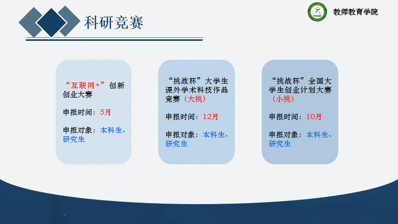 紧接着,叶青老师鼓励大家先去了解和参与科研项目,以院、校、新苗、国创为顺序进行一步一步的深入,以此积攒一些相应的经验,在有新颖点子之后便可以去参加三大重大科研竞赛(“互联网+”创新创业大赛、“挑战杯”大学生课外学术科技作品竞赛、“挑战杯”全国大学生创业计划大赛)。三年来,我院学子申报了多项课题并在各大竞赛中取得了丰硕成果,这给接下来想要涉足这一片领域的同学们提供了一个良好的平台。叶老师认为这是一个良性循环,只需要踏出自己的舒适区,抓住机会,每个人在这里都能获得相应的成长。