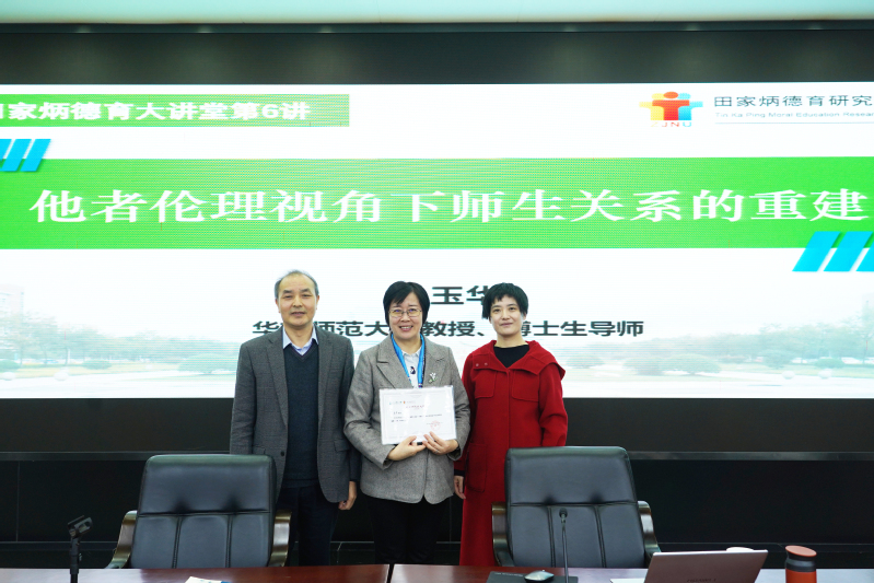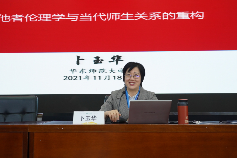 2021年11月18日上午,“田家炳德育大讲堂”第六讲在浙江师范大学17幢112报告厅举行。华东师范大学教育学系教授、博士生导师、少年儿童组织教育研究中心主任、基础教育改革与发展研究所副所长卜玉华教授以“他者伦理视角下的师生关系重建”为主题做了精彩的报告。讲座由田家炳德育研究中心(以下简称“中心”)教师德育能力研究所所长、博士生导师蔡志良教授主持,中心常务副主任、浙师大教师教育学院党委书记查颖以及二百余名师生共同参与了本次活动。