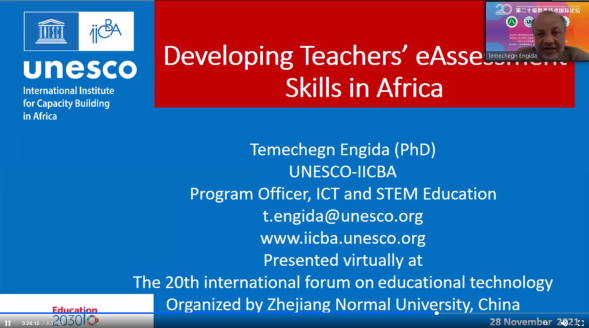 28日上午,围绕“技术赋能教育高质量发展”开设的15个专题论坛同步进行,包括人机协同与自适应学习、深度学习与高阶思维、学习分析与交互环境、教育认知与知识追踪、大数据时代学术理论与教育治理、AR/VR教育应用、教育软性与后疫情教育、教育人工智能与教育伦理、Steam教育及教师发展、基础教育信息化、职业教育/非洲教育信息化、编程教育与计算思维、新文科背景教育技术学研究、博士与青年学者论坛等。在非洲教育信息化专题,来自联合国教科文组织非洲能力建设研究所的Temechegn Engida教授、联合国教科文组织高等教育创新中心项目官员陈德安以及华为TECH4ALL办公室的陈大龙总监分享了“技术赋能非洲教育改革”的相关经验。在教育技术教研成果转化专题,清华大学教育研究院的韩锡斌教授、华中师范大学国家数字化学习工程技术研究中心的刘三女牙教授、广州创显科技股份有限公司的张瑜董事长、科大讯飞教育技术研究院的刘邦奇教授和北京师范大学未来教育高精尖创新中心的陈思睿博士分享了各个团队的研究成果和产学研转化经验。