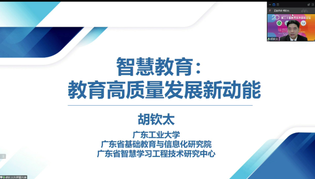 教育部高等学校教育技术专业教学指导分委员会主任、广东工业大学党委书记胡钦太教授在致辞中简要回顾了教育技术国际论坛创办20年来的发展历程和重要使命,提出教育技术学科要以建设高质量教育体系为目标,积极响应我国经济和社会高质量发展的内在要求,迎接发展的新挑战,迈入发展的新轨迹。他指出,本届论坛在疫情多点局部发作之际,克服困难重重,以在线跨校联办的方式开展,聚焦技术赋能教育改革研究,对接基础教育实践与研究,推动中非教育交流与合作,推动跨领域多学科交叉参与,并提供高水准、精细化审稿服务。他真诚期待各位嘉宾在论坛中发表高见,贡献宝贵智慧,共同推动学科专业的创新发展。