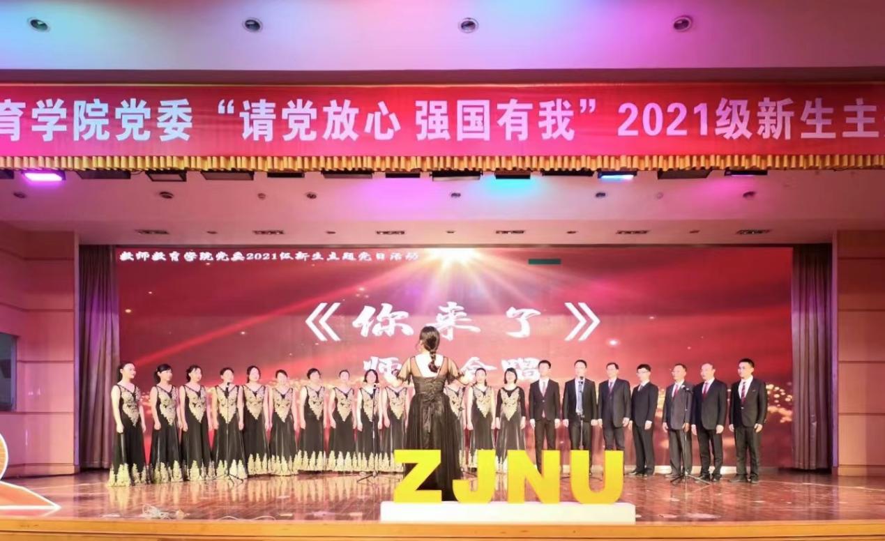 “你来了,你来了,你是我们最亲的人;你来了,你来了,我们是你最爱的人。”一首由校合唱团部分成员和我院师生合唱团带来的《你来了》将教师教育学院党委“请党放心、强国有我”2021级新生主题党日活动的气氛推向了高潮。