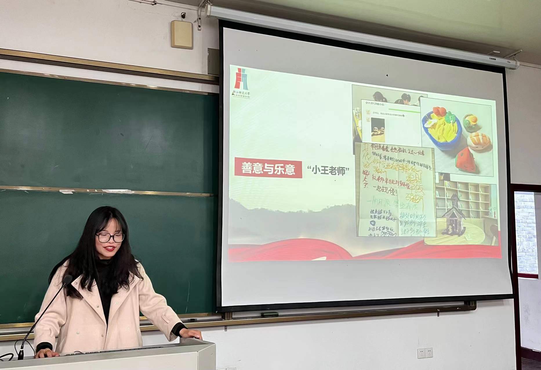 在教育见习优秀个人展示活动上,来自各个领域方向的研究生汇报了自己在见习过程中的见闻,并用研究的视角分享着自己对教育教学的感悟与思考。来自学科教学(数学)方向的赵千惠表示“人生没有彩排,每一场都是直播”。在义乌中学见习期间,老师带领他们发掘数学课背后的数学文化和数学原理,这让她发现自身还有许多不足。优质的人生不一定节节都是优质课,但作为一个好老师,一定要懂学生、善教学、好科研。永远保持好奇、思考和热情。来自学科教学(音乐)的陈嘉荣同学则在见习期间感受到,成为优秀音乐教师所必备的四个心,即“细心”“耐心”“责任心”和“爱心”,和学生做到亦师亦友,以心换心。来自科学与技术教育的朱雪儿从目标规划、所见所闻、所感所悟等方面总结了自己的教育见习,让她感受最深的是,虽然科学知识本身是抽象的,但在教学中的科学知识应是感性的,要注重学生的感性认识,运用多元教学方法,渗透建构主义,将课堂还给学生。来自学科教学(思想政治)的陈莎莎同学介绍到,通过独立开展的一节班会课以及参与学校的科技文化节及校运会,发现班级的管理不仅需要用威信,更多的还需要关爱温暖,用情感带动学生。同时,研究生的见习还要注意研究性,见习期间,他们对初中生关于“红船精神”认同状况进行了调查,并分析了其中存在的问题。