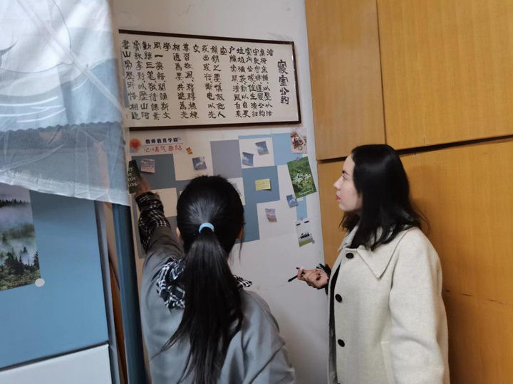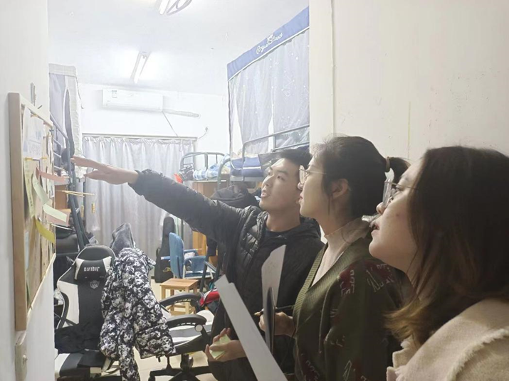 11月14日晚,我院顺利开展了心情气象站评选活动,校心理健康中心专职教师厉佩淇老师、院学工办辅导员蒋栩璐老师、萨依甫加马丽老师和王萌老师作为本次活动的评委,与同学们一同走访各个寝室。