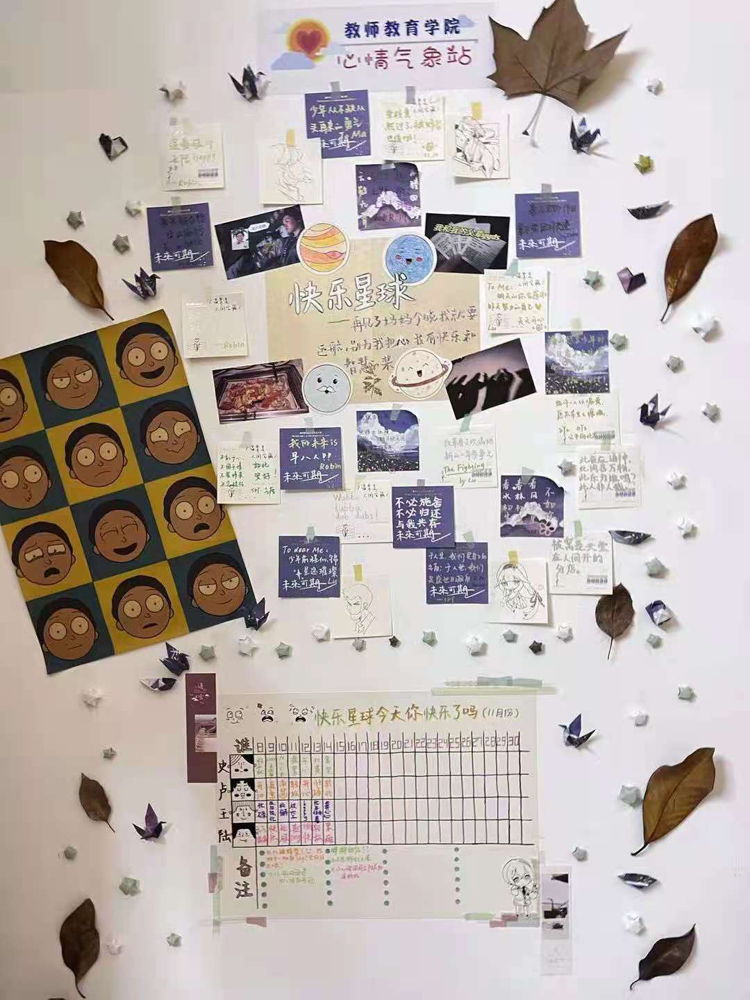 至此,心情气象站评选活动已到达了尾声。凛冬将至,却阻挡不了寝室成员们似火的创作热情。老师在与同学们的交流过程中也感受到了教育学子们的凝聚力和创造力,感受到寝室成员间那份亲密无间的关系。老师在走访的最后寄语同学们:一定要继续坚持心情气象站的建设,为同学们提供一个情绪宣泄和交流沟通的途径,并把它的作用发挥到最大,让每一个寝室都变成一个美好和谐的家园。