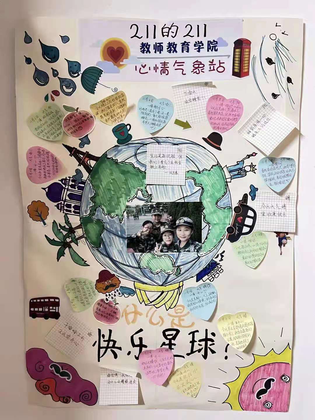 “什么是快乐星球?”在桃源12幢211这个星球上,寝室的成员们过着绚烂多彩的快乐生活,成员们怀揣着对于生活的热爱和积极向上的态度,让星球上总洋溢着欢声笑语。寝室成员们还会将每天的心情和感悟贴在这颗小小星球上,把这颗星球装饰得越来越五彩纷呈,真正地变成成员们心中的“快乐星球”。