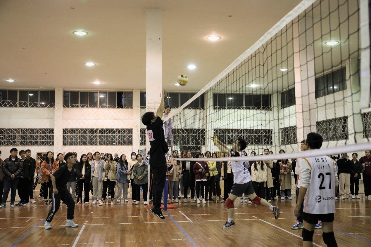小组赛中,我院男排表现出色,顺利进入了交叉淘汰赛。男排以全胜的巨大优势晋级四强,颇有“先声夺人、谁与争锋”的气势。在第三场小组赛中,我院队员起初多次发球失误,但队员们互相鼓励,摆脱心浮气躁的状态,并在接下来的比拼中默契配合,在前两局1:1的僵持比分下,第三局的最后时刻队员们逐渐找回感觉,用几次精彩的救球和扣球扭转乾坤。最终以2:1的比分赢得比赛。