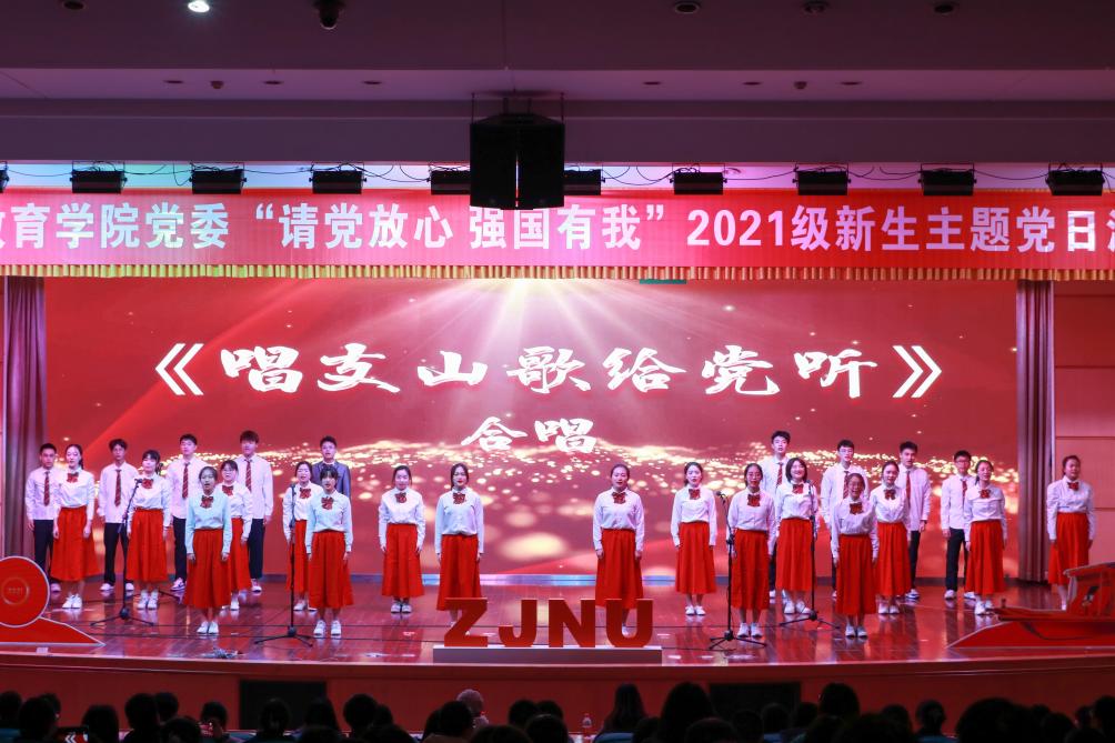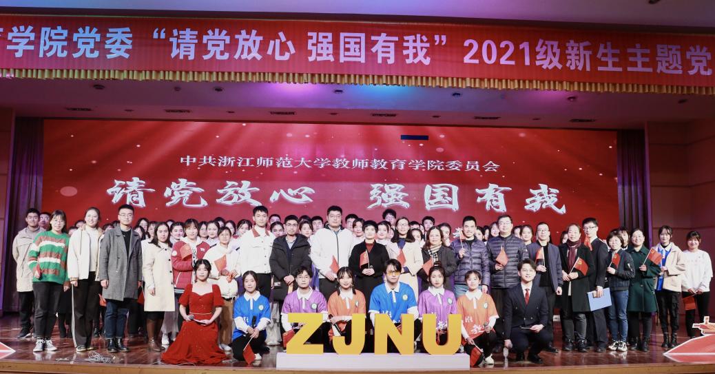 茫茫九脉流中国,纵横当有凌云笔。12月8日晚,中共浙江师范大学教师教育学院委员会“请党放心 强国有我”2021级新生主题党日活动于大学生活动中心二楼报告厅完美收官。主题党日围绕“学院党委班子微党课”、“百年风华,党的光辉历久弥新”和 “百尺竿头,青年无畏破浪前行”三个篇章展开,以线下和线上全媒体直播以及B站同步直播的方式面向全校师生和社会各界。通过形式多样、内涵丰富的主题党日活动,深入学习领会党的十九届六中全会精神,从党的奋斗历史中汲取奋勇争先的前进力量,精神抖擞开启新的奋斗征程,共同谱写新篇章。