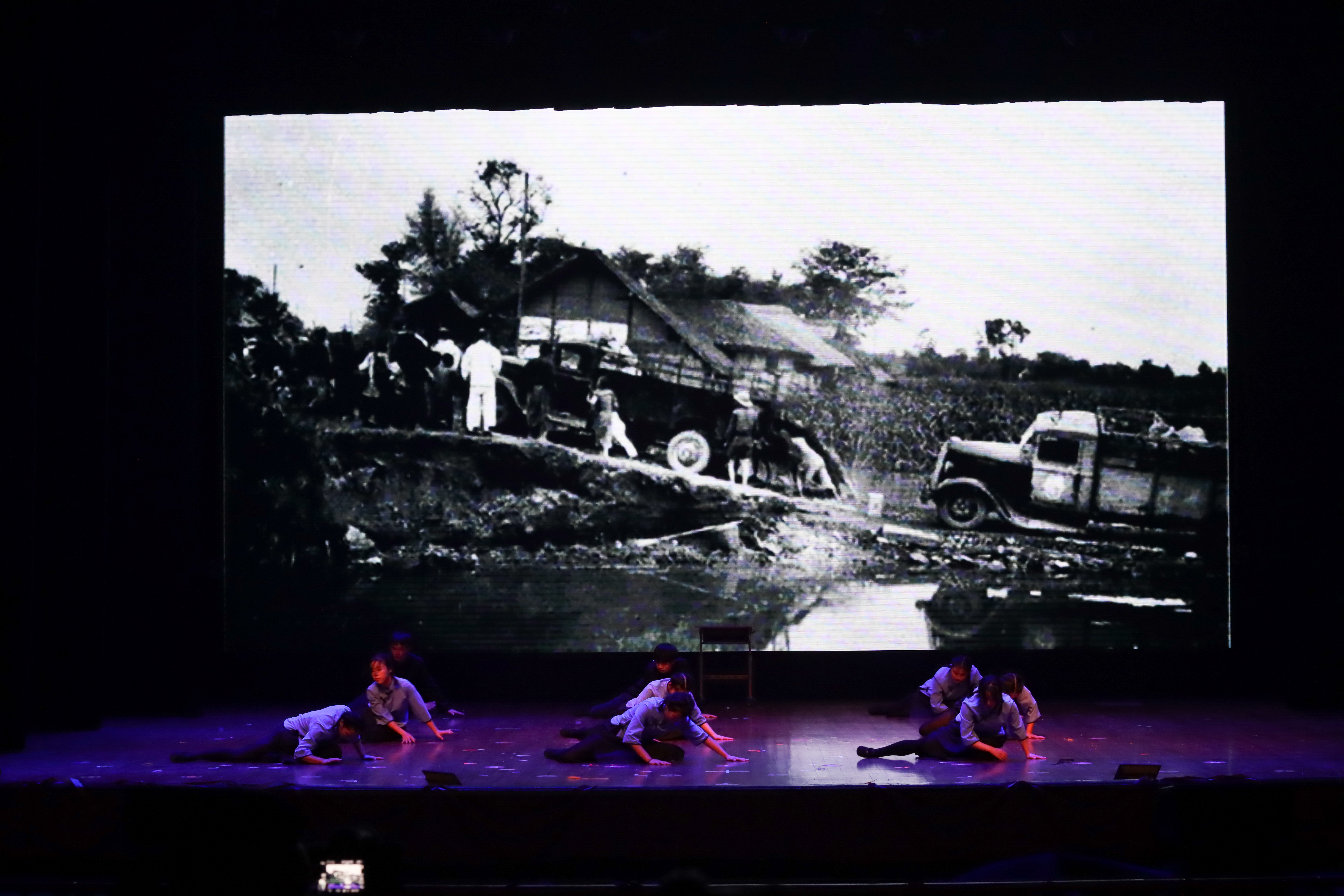 节目的故事发生在抗日战争时期,彼时杭州省立师范学院刚成立不久。在炮火连天、颠沛流离的岁月里,生灵涂炭,满目疮痍,哪怕只求一张课桌的方寸之地,都难于登天!青年学生们辗转奔波,居无定所,但依然牢牢攥紧书本,紧紧护好课桌,化信念为利刃,用自己的赤诚和热爱,为知识撑起一片纯净的天空。舞蹈队的同学以充满力量的动作、生动坚毅的眼神、丰富饱满的情感,再现了当时青年学生不畏艰险、奋发图强的爱国主义精神。