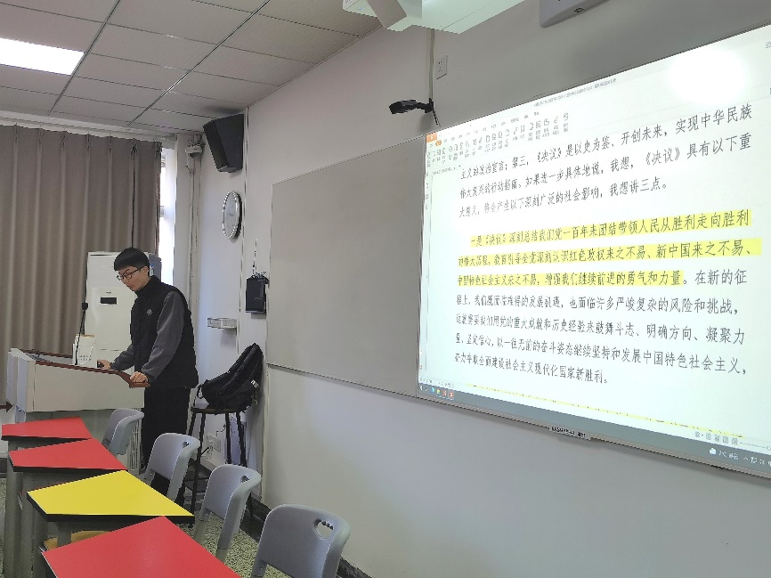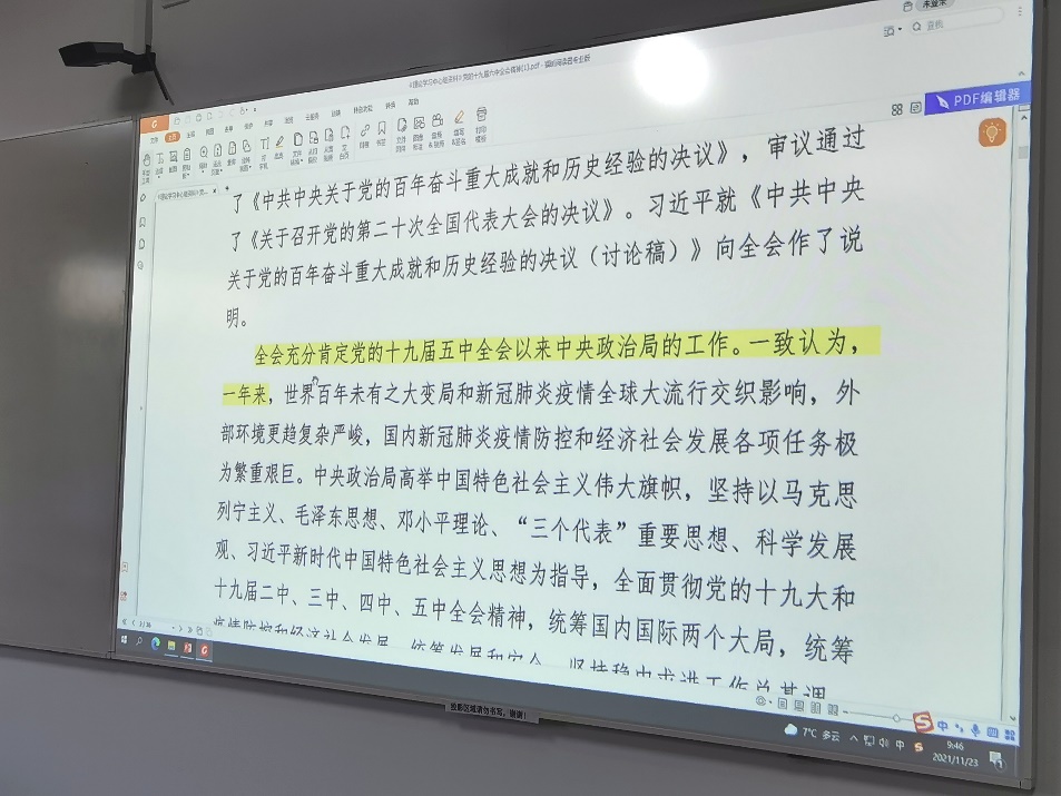 领略过西南联大的红色教育故事后,团日活动来到了第二部分。在团支书的带领下,小教194班重点围绕《中共中央关于党的百年奋斗重大成就和历史经验的决议》和习近平总书记在全会上的重要讲话,学习党的十九届六中全会精神,并深入交流了学习感悟与体会。
