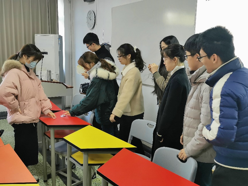 团日活动来到游戏环节——“谁是卧底”。在游戏过程中,同学们从第一组游戏中深刻感到了“阅览室”“图书馆”之间的不同,但在战火纷飞的年代,在西南联大,拥有一间安静、舒适的阅览室是无比宝贵的一件事情。而第二组游戏中,同学们仔细推敲“新民主主义革命”与“社会主义革命”,深入思考二者的区别与联系,回顾了我国共产党的百年光辉历程。