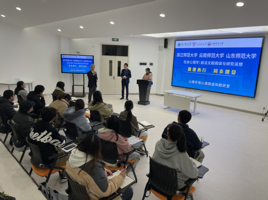 据悉,本次课程是浙江师范大学、云南师范大学、山东师范大学为了响应教育部信息化时代新型基层教学组织建设要求,依托“心理学核心课程虚拟教研室”首次开展三校同步在线课堂,旨在培养应用心理学本科生浓厚的学术兴趣和科学的学术思维,同时进一步推动浙江师范大学应用心理学国家一流本科专业建设与心理学科基层教学组织建设,推进现代信息技术与心理学本科教育教学融合融通。