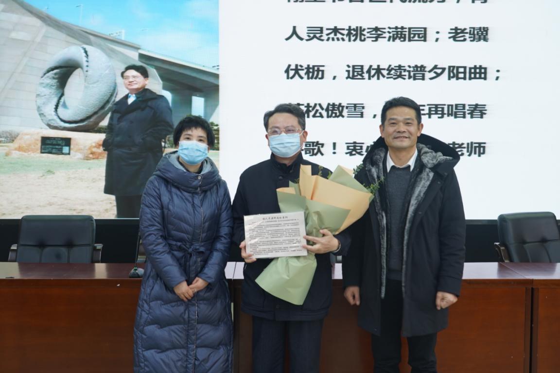 最后,周跃良院长和党委书记查颖向退休教师送上退休纪念品和退休贺词,并与老同志们合影留念。整个退休仪式暖人、暖心又暖情。