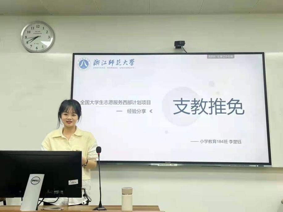 之后,李楚钰为同学们介绍了支教保研的相关事项。在介绍具体细则前,她给大家讲述了自己不同实习的经历与体会,告诉大家在每个阶段对自己的规划有摇摆是非常正常的,重要的是最后明确自己的前进方向。接着,李楚钰又详尽地介绍了支教保研的相关要求、流程、条件等,提醒大家如果有意向的话一定要提前做好充足的准备、提早规划。
