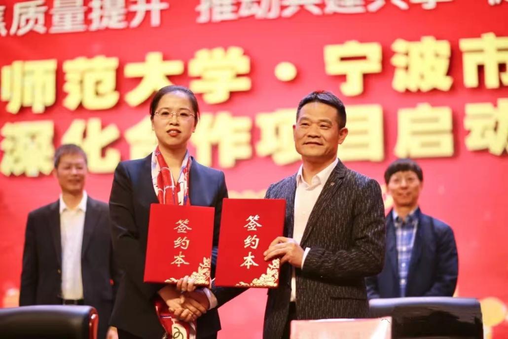 2022年3月10日,宁波市四明中学深化合作项目在宁波四明中学签订。浙江师范大学钟依均副校长,宁波市教育局王飞副局长,浙师大教师教育学院院长周跃良,浙师大科学研究院副院长刘勇,教师教育学院院长助理李云星,浙师大教师教育学院兼职教授、省特级教师郑志湖,社会服务中心主任杨光伟,宁波市四明中学校长陆雁以及四明中学全体干部、教师出席签约仪式。