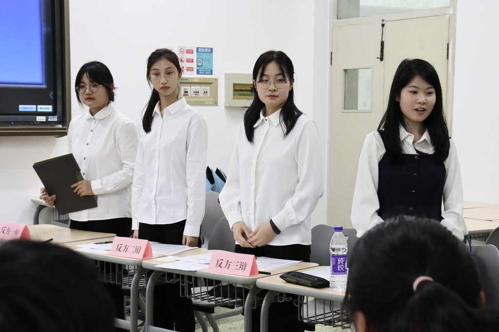 第一场辩论赛开始,正反双方围绕“接受现实/改变现实更需要勇气”这一辩题开展辩论,来自研一代表队的正方提出:“勇气在接受现实中占核心地位,因此我方认为接受现实更需要勇气。”而来自教技212班代表队的反方则认为:“改变现实所需面临的未知性更强、风险更大、挑战更多,所需承受的压力也就越大,因此我方认为改变现实更需要勇气。”双方你来我往,攻防交替,用语言实现了思维的碰撞。