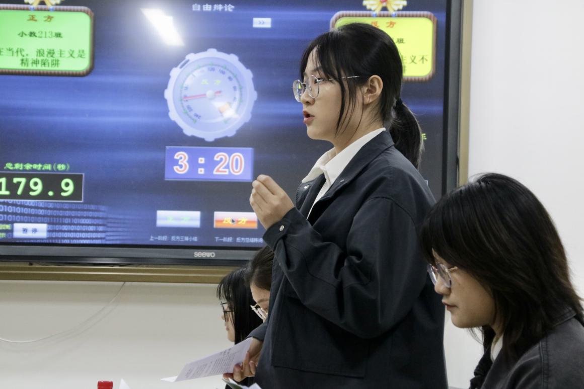 3月20日晚,教师教育学院2021级新生辩论赛轮空赛于16幢104教室顺利举办。来自小教213班的正方辩手和小教211班的反方辩手围绕“在当代,浪漫主义是或不是精神陷阱”的主题展开辩论。辩论过程精彩迭出,让我们一起来回顾一下本次辩论活动吧!