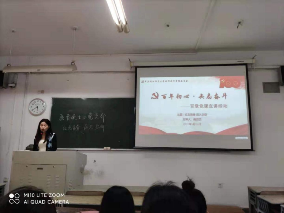 5月26日,教育硕士第二党支部召开党史学习教育专题,主讲人娄顶顶同志以“红色青春,历久弥新”为主题,进行了一节别开生面的党课。