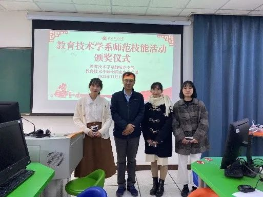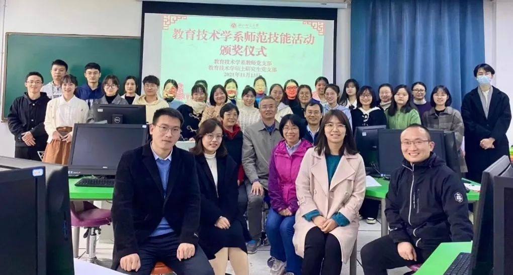 2021年11月13日上午,教育技术学系教师党支部为检验2020级现代教育技术学研究生教育见习一月后的学习成果,提高师范生教育教学基本技能,促进学生一专多能综合发展,于2幢302教室举办师范技能活动。担任本次活动的评委均由我支部党员教师组成,分别是李鸣华、张家华、梅晓勇、何文涛、倪慧敏、管珏琪、李笑樱、张明焱。