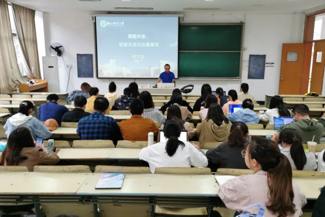 为营造浓郁的学术文化氛围,培养研究生科学精神,提高研究生的学术素养,10月13日上午9时,由教师教育学院教育技术学系教师党支部联合教育技术学硕士研究生党支部举办的“我为师生办实事”系列活动在17幢116教室顺利开展。本次活动主讲人何文涛老师围绕“课题申报的论证方法与注意事项”进行了一个多小时严谨专业又不乏幽默风趣的精彩讲解。活动采用线下讲授和线上直播相结合的方式,全体教育技术学、现代教育技术研究生参与其中,现场气氛热烈。