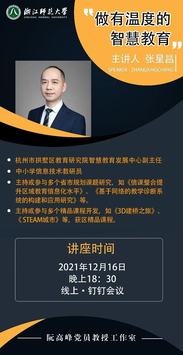 2021年12月16日晚,由浙江师范大学教师教育学院阮高峰党员教授工作室发起的名为“E号桥”的在线共同体第2期研修活动顺利开展。