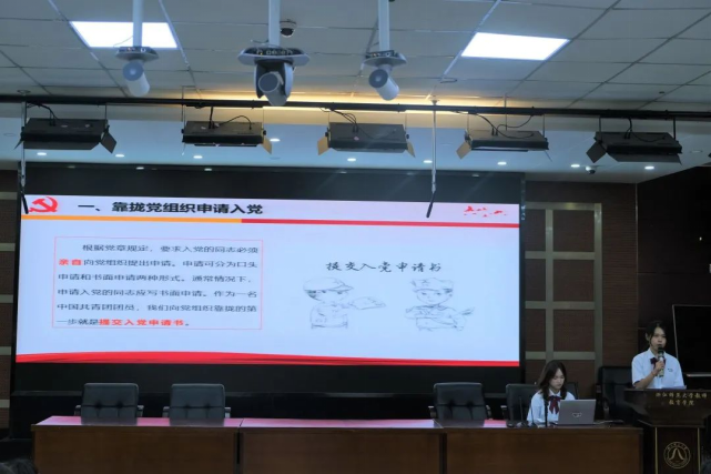 清晰易懂的流程讲解、面面俱到的文字说明不仅调动了宣讲会现场的热烈气氛,也让新生们对如何向党组织靠拢有了更深入的了解,对未来的发展作出了更清晰的规划。
