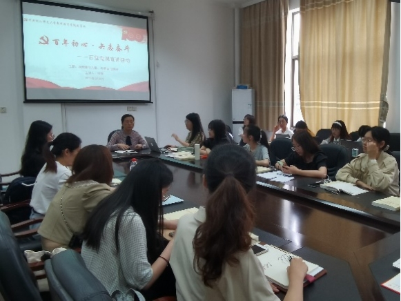 2021年6月5日上午,小学教育本科生第一党支部召开了主题学习教育,支部书记叶青主持并带给了支部成员一堂以“凝聚青年力量,传承奋斗精神”为主题的精彩党课,支部成员认真聆听,体悟党课精神。
