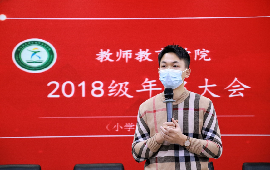 12月9日下午,教师教育学院2018级年级大会于17-112报告厅顺利开展。会议分小教专场、心理与教育技术专场两场,我院党委副书记狄伟锋老师、教务办闫伟老师,辅导员喻松老师、陈秋羽老师及全体2018级学生参与本次活动,由18级辅导员张文潇老师主持。