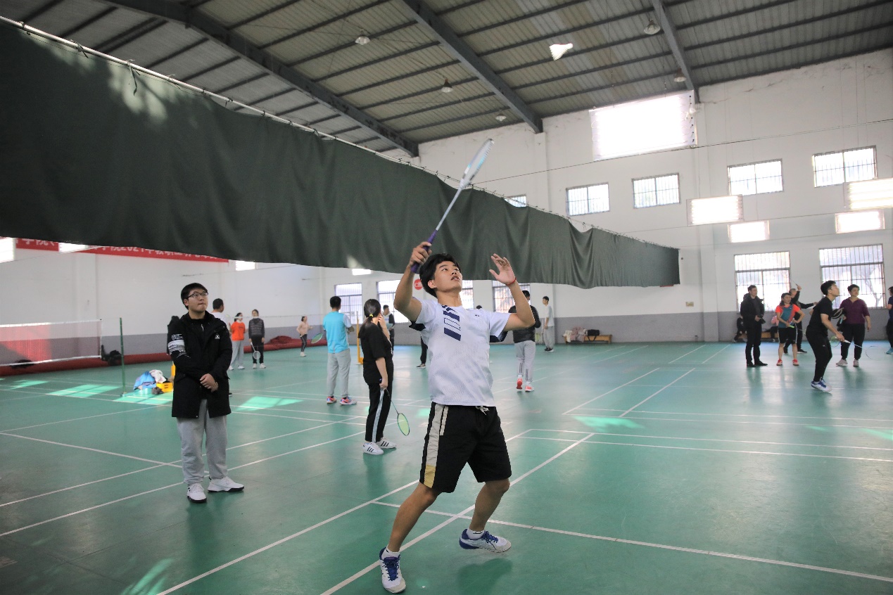 单打过后是男双的环节,比赛一开始,师生双方就开始了激烈的拼杀,高远球、扣球、劈杀、吊球等各路球技被他们演绎得淋漓尽致,比分在互相拉扯中不断被改写。最终,学生队以一局之差惜败,教师队再次获胜。