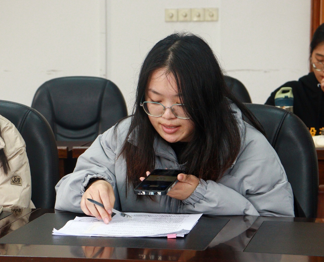 院学生会执行主席党思怡则开展了主席团的工作总结与未来展望,她提出学院学生会应当积极开展改革、加强组织建设从而更好发挥主席团的组织领导作用、不断提高学生干部的整体素质,学会在学生工作中寻找乐趣与意义。