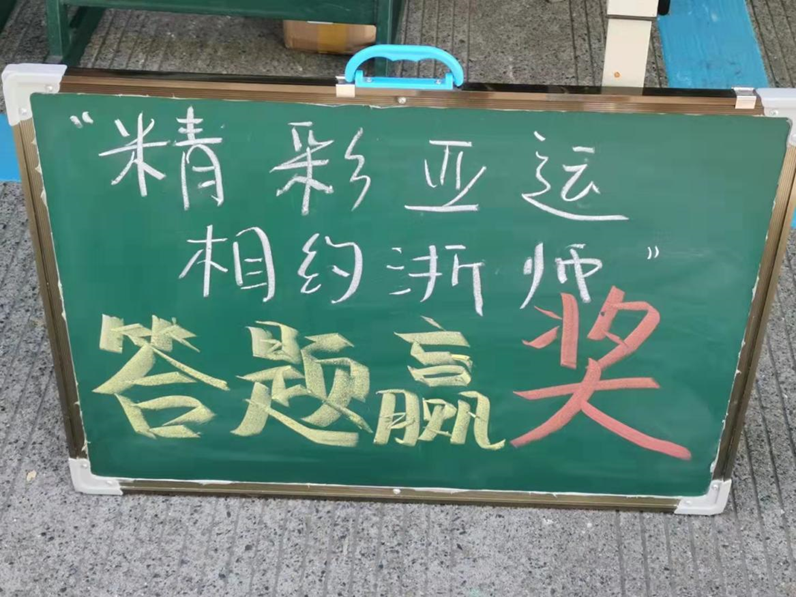 “亚运答题赢奖有兴趣看一下吗?”“恭喜你获得一等奖!“两天的班级志愿活动令我感触颇深。班级同学分工明确、各司其职,大家的热情参与更是让我们感受到了此次活动的意义所在。杭州亚运会举办在即,我们也希望能通过此次活动科普亚运会小知识,让更多人助力亚运会!