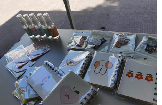 在活动中,同学们需在规定的时间内从题目信封中抽取10道题进行回答,根据答题数目来决定抽奖的等级。答对7道题的同学抽三等奖,包括钥匙扣、亚运会主题口罩;答对 8~9 道题的同学抽二等奖,包括小清新记事本、便签;答对10道题的同学抽一等奖,包括免洗洗手液、亚运会纪念品。