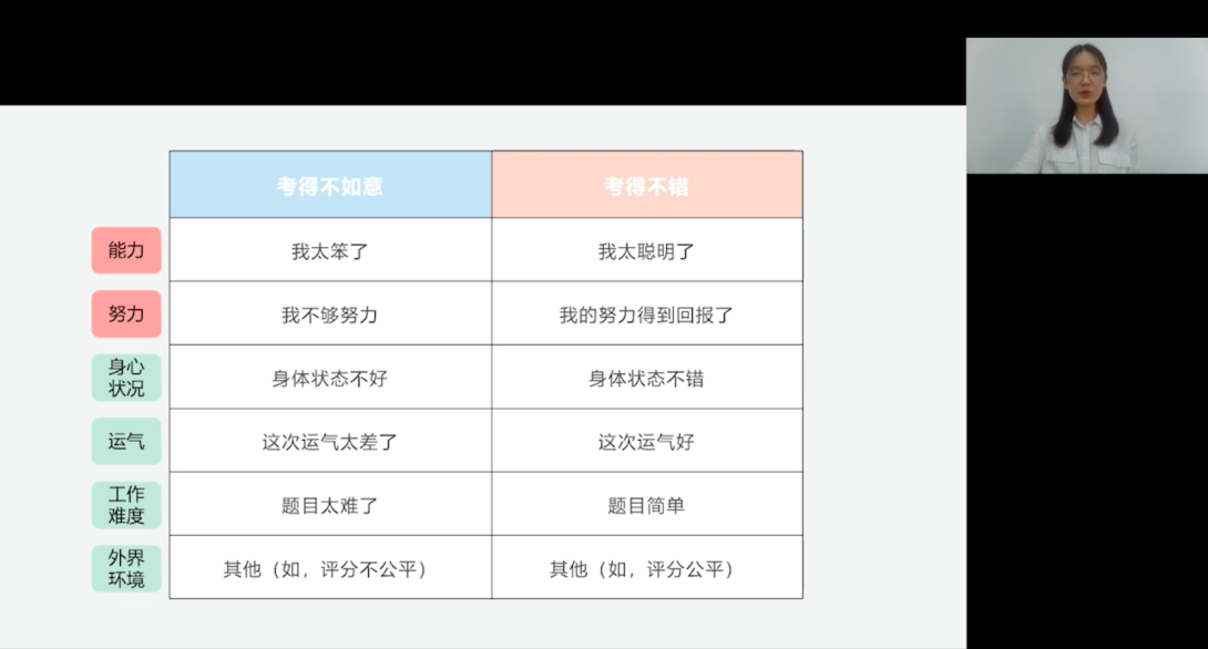 小章老师则从心理放松操、复习方法、归因理论、自我预言实现、深呼吸、酝酿效应等方面来帮助同学更好地放松自己,达到最佳状态。她从科学的角度出发,帮助同学们了解自己的心态,选择恰当有效的学习方法;并适时提醒同学们进行自省,分析自我的优势劣势,从而稳步提升。缓解初三、高三学生身心的疲倦,清醒同学们的头脑,改善同学们的记忆,帮助同学们更好地踏上考试的战场……一条条温暖的建议,只为帮助大家能够顺利调整心态,到达自己想要去的地方。