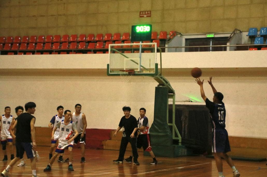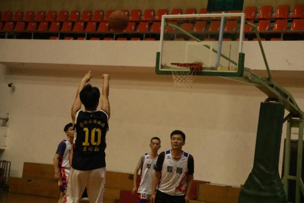 在下场比赛中,学生组一路突飞猛进,疯狂追赶教师组创造的分数,分数几近追平。随着时间不停流逝,在比赛最后紧张的两分多钟里,观众们被赛场上的气氛所带动,屏息凝神关注着赛场上的一切。11分的差距、8分的差距、5分的差距……师生双方超强的身体和心理素质将赛况推动得极度扣人心弦。面对对手的攻势,教师组沉着冷静,把握时间,在计时正好结束时,扣进了最后一个漂亮的三分球。