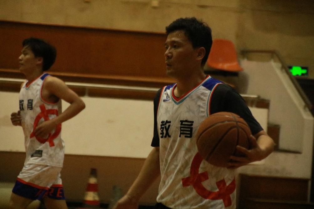 稍作休息后,双方都对队伍的阵容人员进行了调整,以更好的实力迎接接下来的比赛。接下来是扣人心弦的比分拉锯战。在前半场中,学生组重燃斗志,在不利的上场比赛前提下坚守战场,卯足了劲于篮球场上冲锋、跳跃、传球,分数差距一度有所缓和;但教师组也不甘示弱,场内队员默契配合、精准控场,场外队员加油打气、鼓掌喝彩。教师们矫健的身姿灵活地突破对方球员的防守,用利落的投篮姿势诠释了宝刀未老的风采。在一个个突破自我的环节中,学生和教师们都保持着最佳状态,用智慧和技巧呈现了令人拍手叫绝的篮球赛。最后,教师组仍然作为优势方结束了本场比赛。