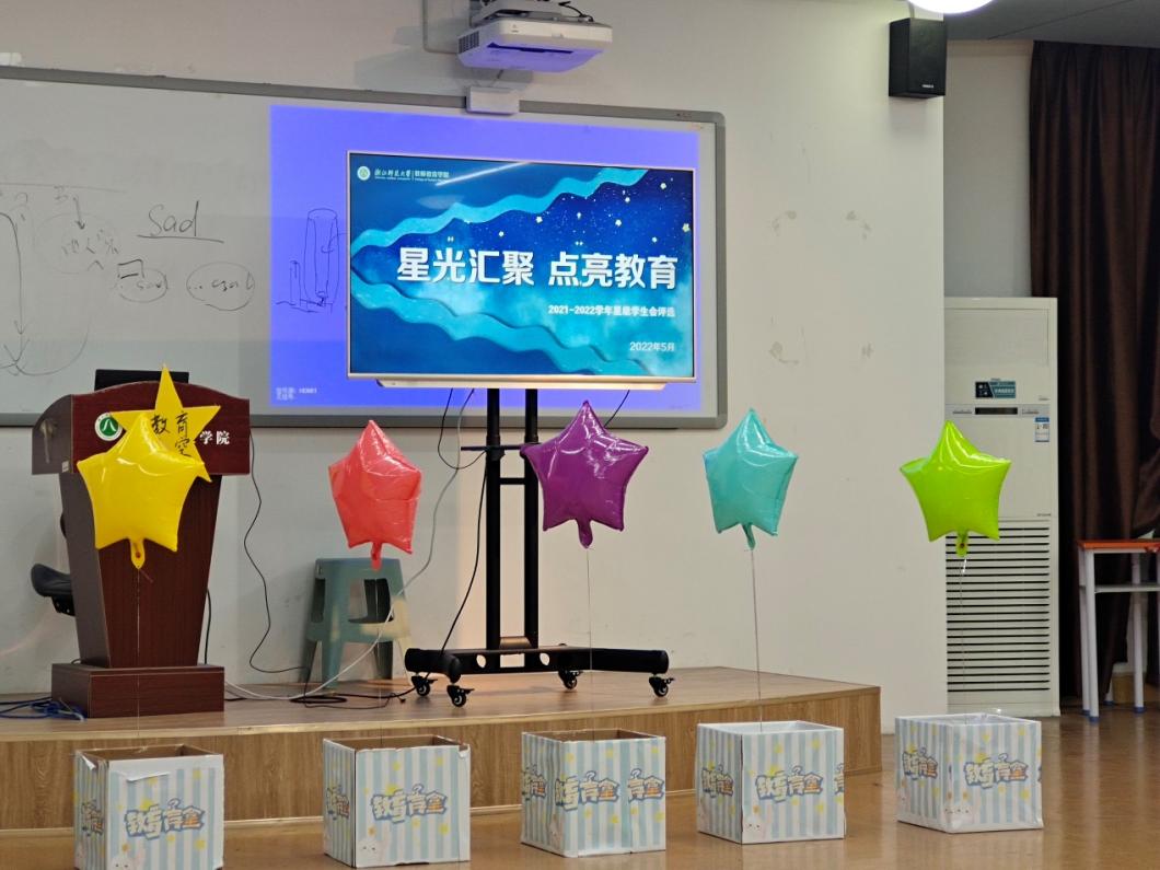 5月24日,浙江师范大学2021-2022学年“星级学生会评比”线上连线展示活动圆满结束。来自不同学院的19支学生会代表队参与本次活动,结合各院特色展示学生会工作情况,并接受评委提问,让整场活动精彩不凡。我院学生会代表以“星光汇聚,点亮教育”为主题进行了评选展示,并以总分第一的好成绩获评“五星级学生会”荣誉称号。