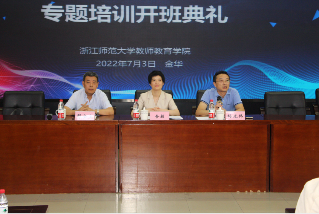 为深入贯彻党的十九大和十九届五中全会精神,切实提升学校育人水平,有效提高中小学课程的教学实效,推动学校课程创新发展。7月3日上午,浙江师范大学教师教育学院在112报告厅举办了金东区精准教学实践能力提升专题培训的开班典礼,浙江师范大学教育学院党委书记查颖致辞,金东区教育体育局中心主任邵金生讲话。全区50多名中小学骨干教师参加培训。