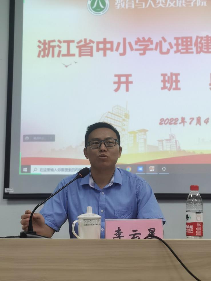 7月4日下午14:00,浙江省中小学心理健康督导师培训班在17幢718教室顺利开班,开班典礼由浙江师范大学教师教育学院赵轩博士主持,浙江师范大学副校长李伟健、浙江师范大学教师教育学院院长助理李云星出席会议并发表讲话。参与本次开班典礼的还有浙江省中小学心理健康骨干教师共计50余名培训学员。