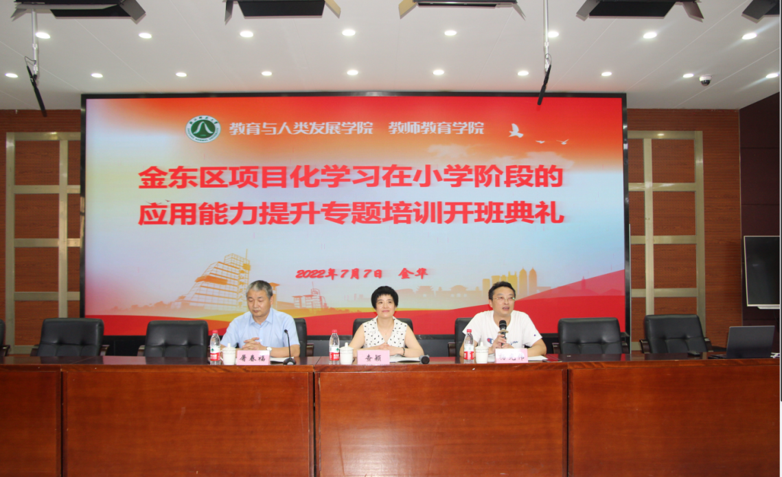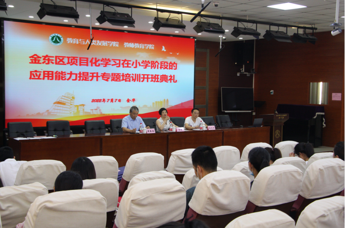 7月7日上午9:00,浙江师范大学教师教育学院举办了金东区项目化学习在小学阶段的应用能力提升专题培训的开班典礼,浙江师范大学教育学院党委书记查颖致辞,金东区教育体育局教育中心屠春福讲话。全区70多名小学骨干教师参加培训。